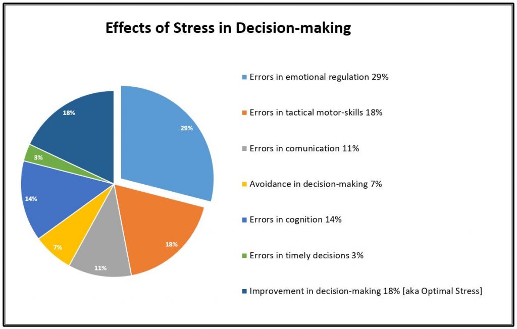 Under high stress or high arousal, your decision making is impacted. In policing, the effect of stress could lead to a misjudgment while driving, a confrontational public interaction that leads to a complaint or worse. Emotional regulation accounts of 29% of errors in decision making.